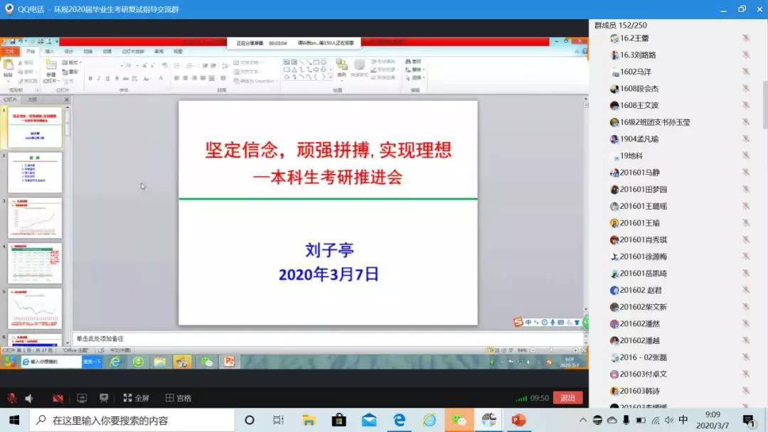 3月7日,环境与规划学院利用网络直播平台举办了“坚定信念、顽强拼搏、实现理想”考研复试与就业指导交流会,环境与规划学院副院长刘子亭、辅导员崔邢、各系主任、毕业班班主任以及2020届毕业生近200余人参与了本次线上指导交流会。